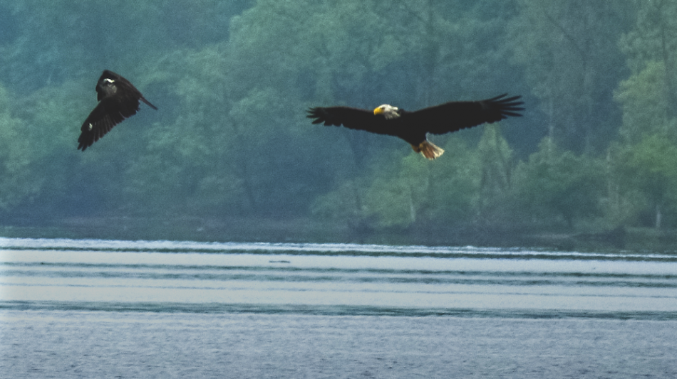 A bald eagle forces an osprey to relinquish its prey (Photo: Robert Blanton)