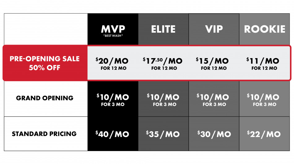 For a limited time, customers can pay one penny to lock in 50% off any Membership for a full year. This offer is available online only prior to the location opening, and at the store's grand opening, those who locked in their presale can begin washing.