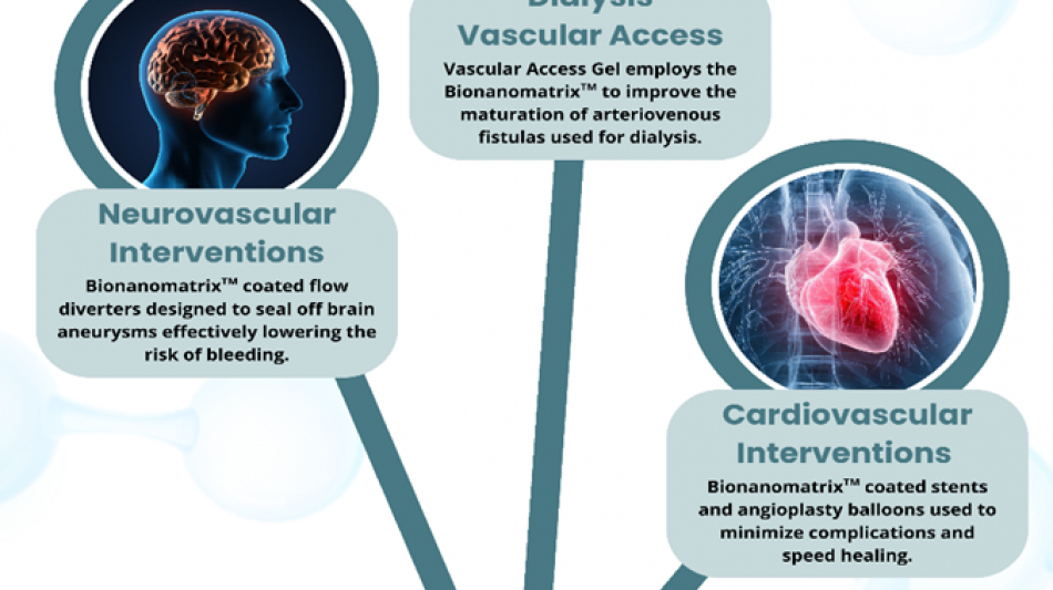 Accelerating platform-driven clinical innovation across vascular, neurovascular, and cardiovascular applications through a centralized Bionanomatrix™ IP and R&D engine.
