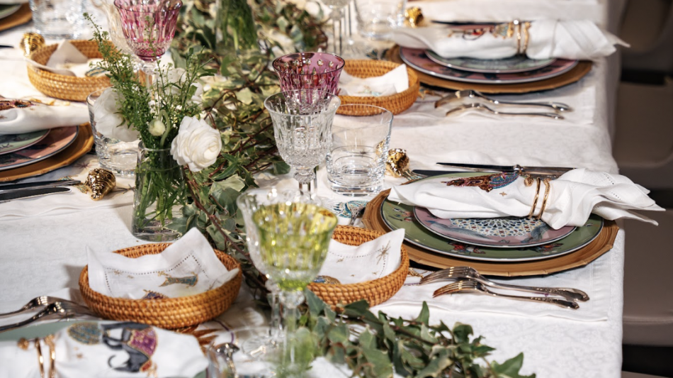 Traditionally, private dining offers a standard table setting. Art de la Table À la Carte transforms the table into a canvas of high design. Creative directors Natacha Dassault and decorator-designer Alexandre Donzé Solis have hand-selected and "mixed and matched" the finest pieces from the world's most prestigious heritage brands to create ten distinct scenographies.