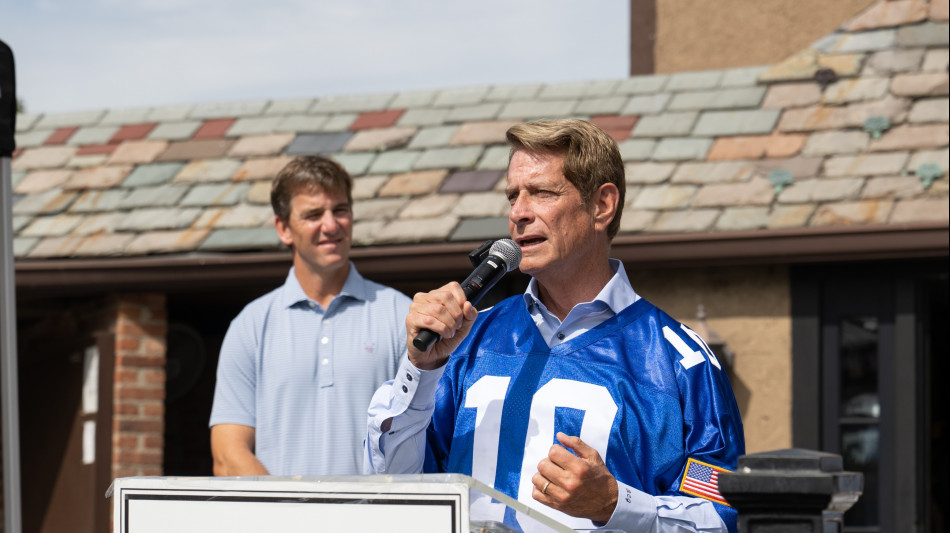 The outing began with a special presentation as Town Title, joined by former New York Giants quarterback Eli Manning, honored Robert C. Garrett, FACHE, CEO of Hackensack Meridian Health, with a signed event jersey. The gesture celebrated Garrett's visionary leadership and dedication to advancing healthcare across New Jersey. Manning also marked his own milestone this year, celebrating 10 years with the Tackle Kids Cancer initiative.