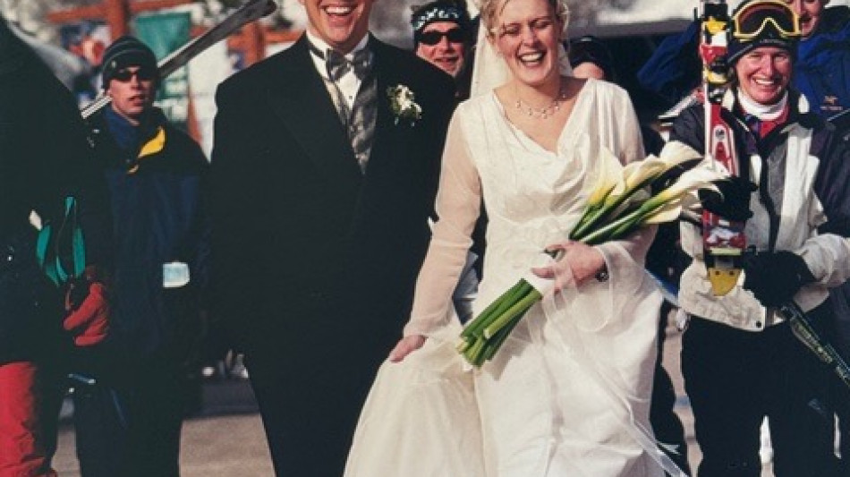 Brandon and Michelle Barber at their ski-resort wedding ceremony in December 2000