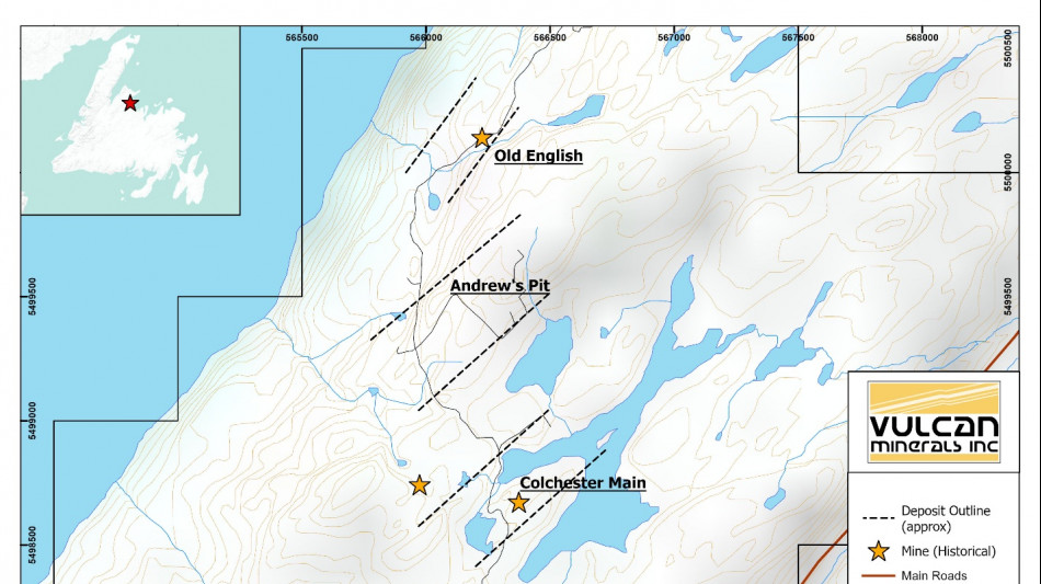 ST. JOHN'S, NL / ACCESS Newswire / November 13, 2025 / Vulcan Minerals Inc. ("the Company" - "Vulcan") (TSXV:VUL), provides an update on the Colchester project with a review of historical drilling and compilation incorporating the most recent drilling results. A compilation of historic drilling highlights for the Colchester project includes up to 39.97 meters of 1.03% copper and 15.8 meters of 2.19% copper. A property review is also presented including the Little Bay project.