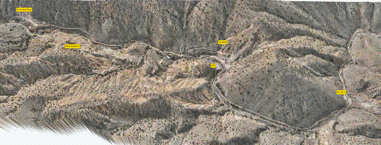 Figure 1: Aerial overview of the American Antimony Project highlighting key historic and active targets including Antimony King, King Solomon, Arrance, IHX, and the "No Name" prospect. Ongoing drone surveys are generating high-resolution 3D models across the Bernice Canyon corridor to support exploration and mine planning.