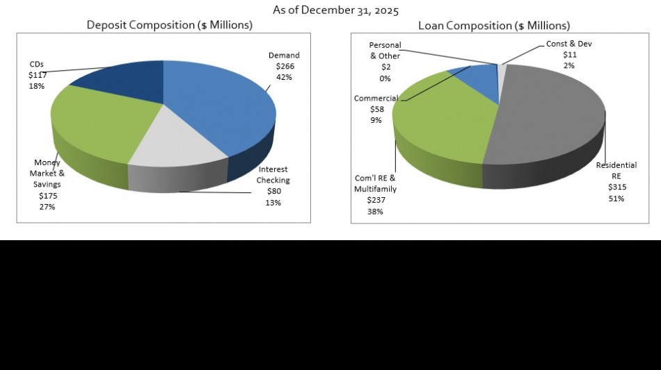 Credit quality remained strong and improved steadily throughout the year due to payments and the successful resolution of a previously non-performing loan. At December 31, 2025, non-performing loans represented 0.09% of total assets, compared to 0.12% at September 30, 2025, and 0.22% at December 31, 2024.