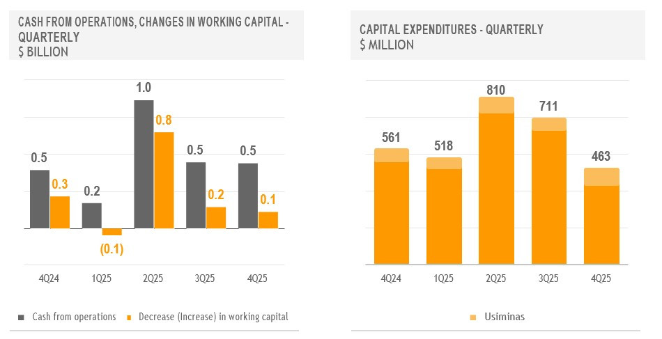 In addition, net financial results included a charge of $21 million in the fourth quarter of 2025, in connection with the accelerated recognition of the purchase of an additional participation in Usiminas from Nippon Steel Corporation and Mitsubishi Corporation.