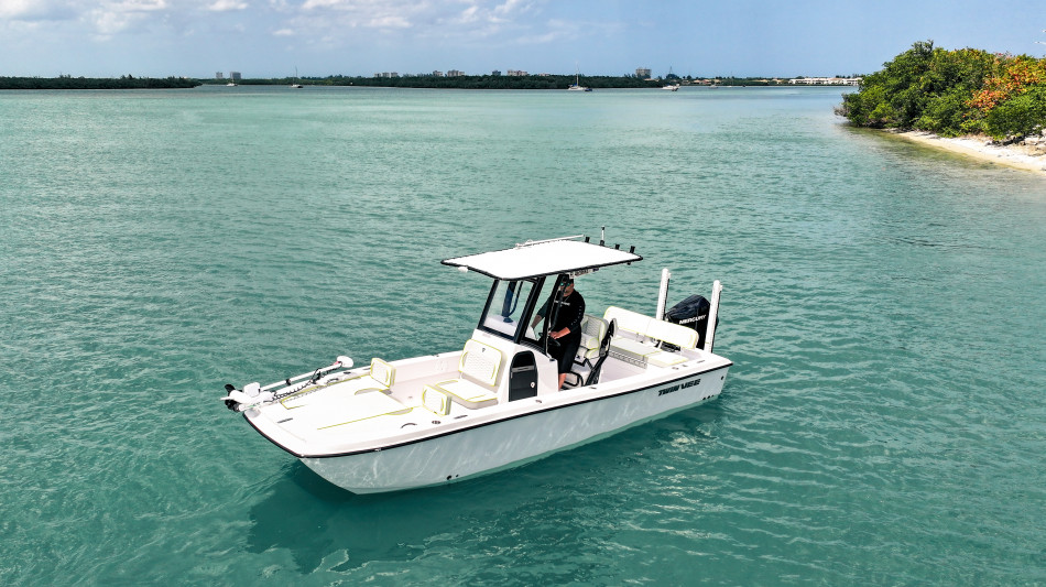 For anglers, Mr. Rudow lauded the robust feature set, noting its readiness to roll with a powder-coated T-top and amenities such as "a pair of 25-gallon livewells, a tackle station under the helm seat, and four rocket launchers across the back of the top." According to Twin Vee, the 22 BayCat features a 65-gallon fuel tank and is capable of handling up to 200 maximum horsepower, providing excellent range and performance for its class.