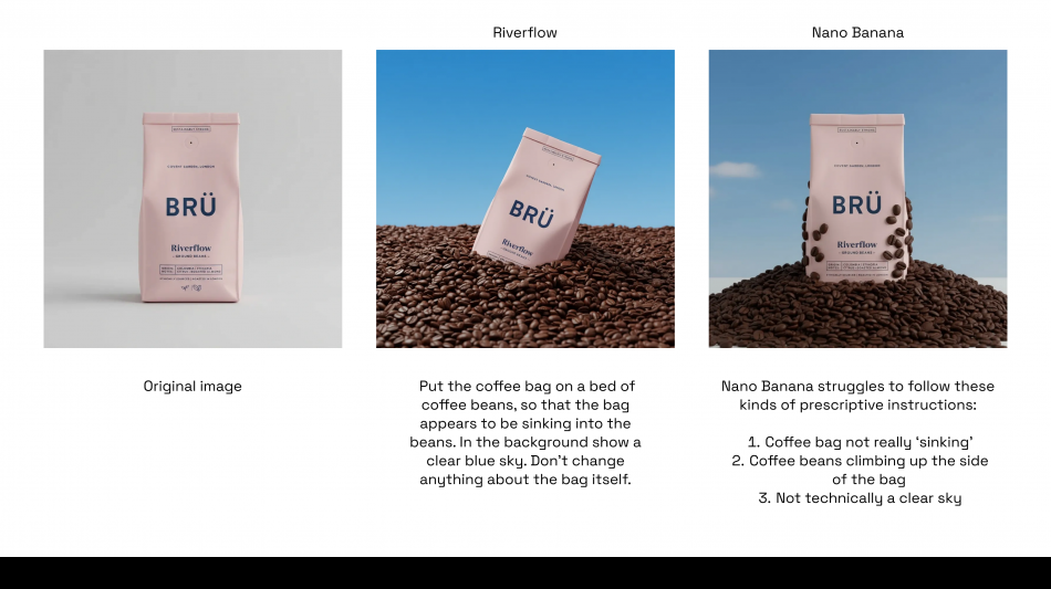 Within Sourceful's own platform, Riverflow powers a specialised application focused on branded packaging and marketing assets. The model grew from Sourceful's mission to push the limits of image editing for designs destined for physical print, where millimetre accuracy and consistent colour are essential.