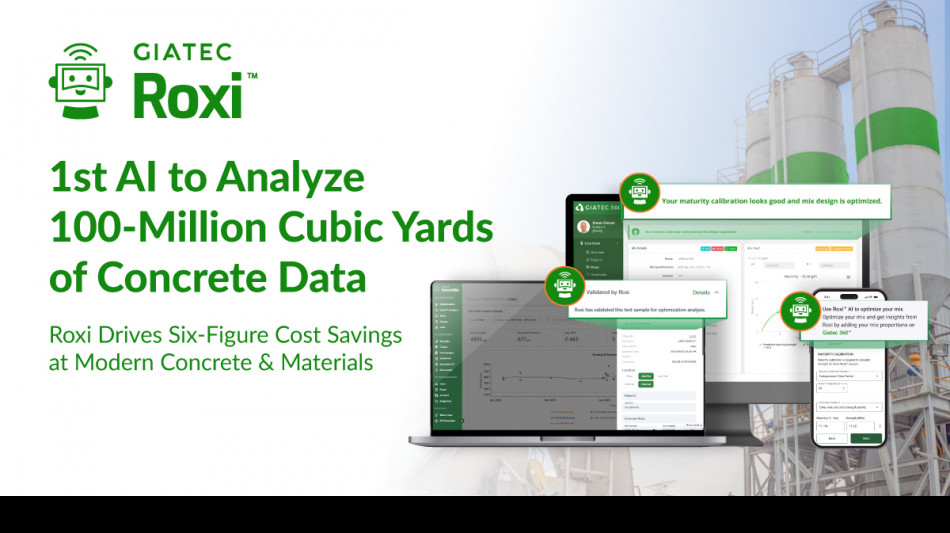 "As Roxi surpasses 100-million cubic yards of analyzed concrete, it is proof that artificial intelligence is delivering real, measurable value in concrete production today," said Aali Alizadeh, CTO & Co-founder at Giatec. "Roxi is learning from real concrete, in real conditions, on real projects leading to a broader industry shift toward intelligent, connected concrete data, where insight is continuous, not delayed, and decisions are driven by data, not guesswork."
