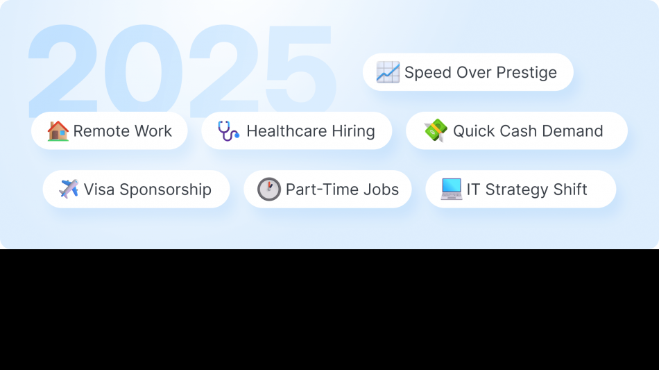The fast-pay phenomenon. One of 2025's most revealing trends emerged in search query data. Terms like "immediate hire" and "we pay cash daily" consistently ranked among the top searches. "Immediate hire" search queries peaked during the winter months, confirming demand for supplemental income and increased financial pressure on American families.