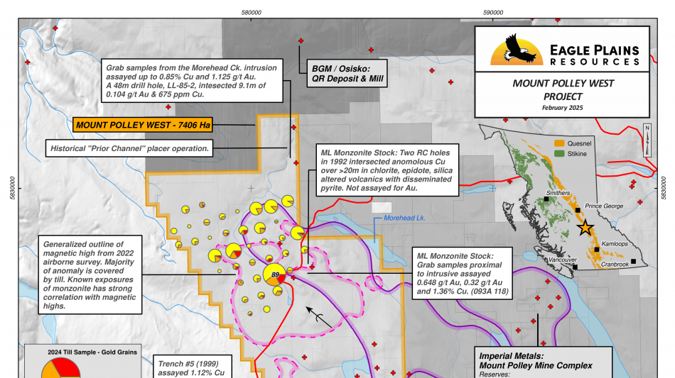 "We are excited to add the Mount Polley West project to the Tana portfolio and work with the Eagle Plains, one of the top project generators," commented Tana CEO Vic Koraijan. "The historic compilation in combination with the recent work by Eagle Plains has identified excellent porphyry and epithermal targets in a known mineral rich belt," he added.