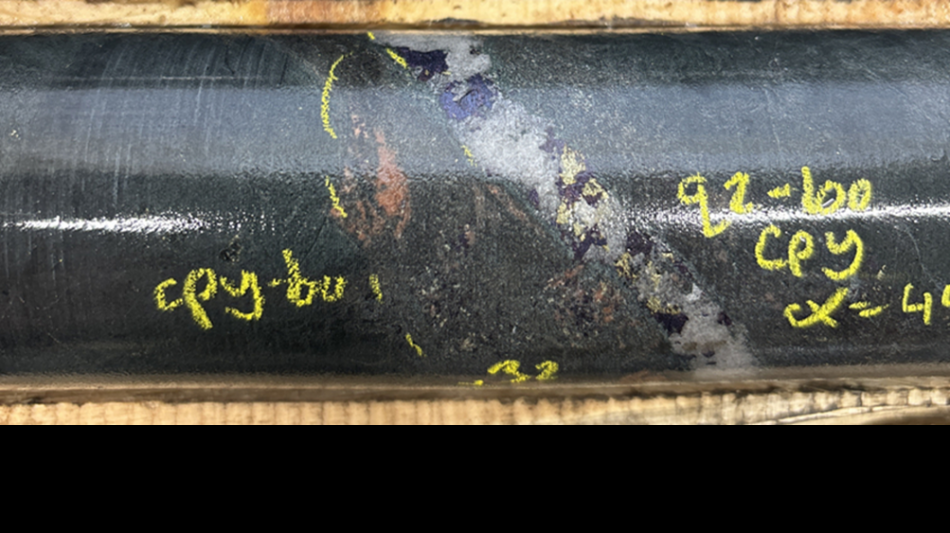 Mineralization, so far, is primarily chalcopyrite with locally abundant bornite with generally minor or no pyrite suggesting an extensive, well preserved, very copper-rich, potassic altered porphyry core zone is present in the target area.