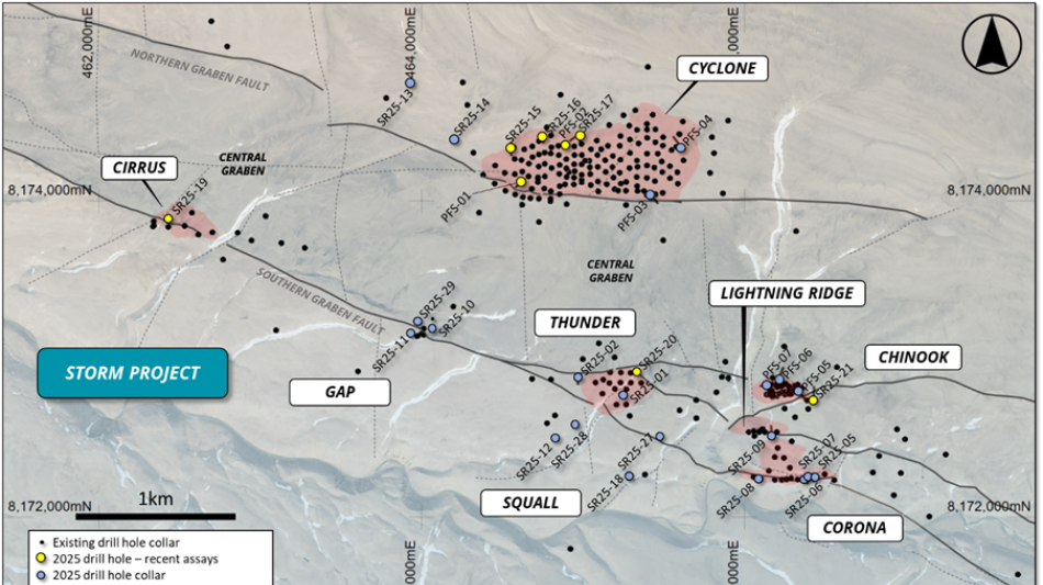 "We are very encouraged by these new intercepts of near-surface copper mineralization at Storm. In addition to high-grade intervals within the current resource envelope, geotechnical drilling has intercepted thick, high-grade intervals up to 27.3% copper within the proposed pit walls, extending beyond the limits of the current resource. These results strongly support the potential for significant resource expansion at Storm.