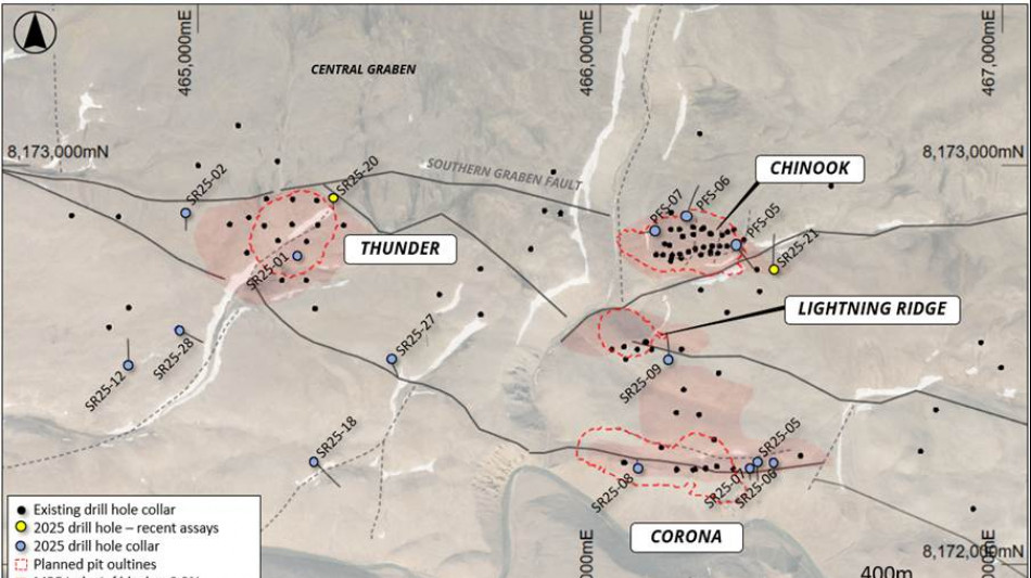 Thick intersections of copper close to the surface have been confirmed in key areas within and outside of the current resource envelopes (drill holes SR25-011, -015, -016, -017, -019, and -020). The drilling was designed to upgrade the existing inferred category resources and to potentially expand the current open-pit designs. Importantly, several of these intervals have higher grades than the current resource estimate (MRE), confirming confidence in the continuity and quality of the current resources.