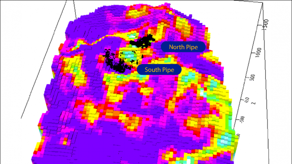 Target 1 - Highest Ranked Anomaly:Located just to the west of the current breccia pipes, Target 1 was identified as the strongest gold target due to a well-defined coincident gravity low and low-resistivity anomaly extending several hundred metres deep. Dr. Selway described Target 1 as "the most robust target" of the six.