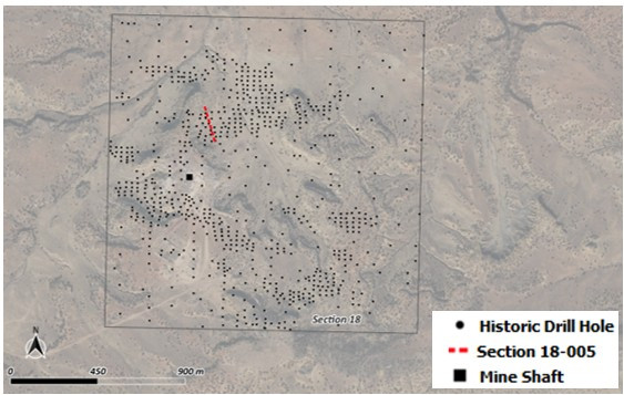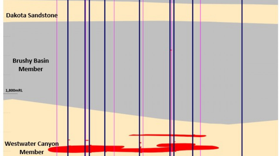 As a general illustration of the interpreted stratigraphy and uranium mineralization at Rio Puerco, Cross-section 18-005 is presented below in Figure 2. The following is a selection of interpreted uranium mineralization intersections for historical drill holes in Cross-section 18-005:
