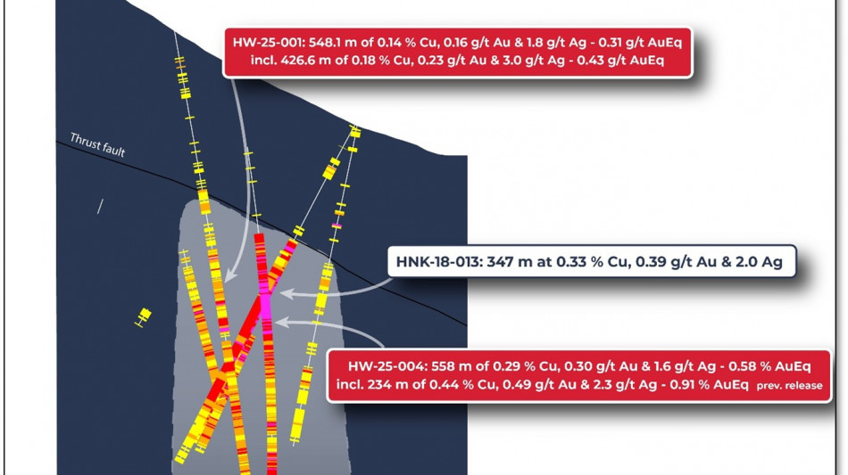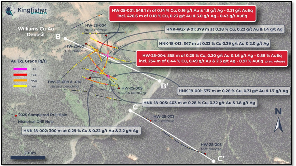 HW25-001 (Williams): 548.1 m of 0.31 g/t AuEq or 0.34% CuEq3 from 294.0 m