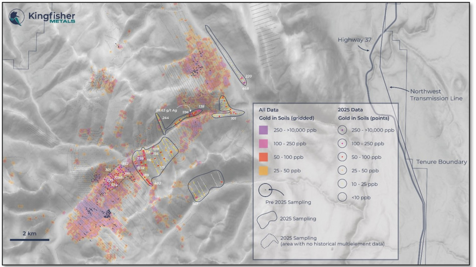 VANCOUVER, BC / ACCESS Newswire / November 10, 2025 / Kingfisher Metals Corp. (TSX-V:KFR)(FSE:970)(OTCQB:KGFMF) ("Kingfisher" or the "Company") is pleased to announce further results from the 2025 exploration and drilling program at the HWY 37 Project. The 933 km2 HWY 37 Project is located within the Golden Triangle, British Columbia.