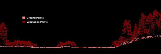 Fig. 2: LiDAR Data Distinguishes between Vegetation and Bare Earth, Enabling an Understanding of Vegetation Cover and Tree Canopy Height