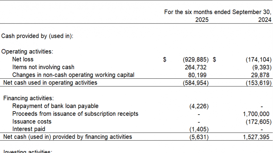 For the three-month and six-month periods ended September 30, 2025, the summary of the financial results are as follows: