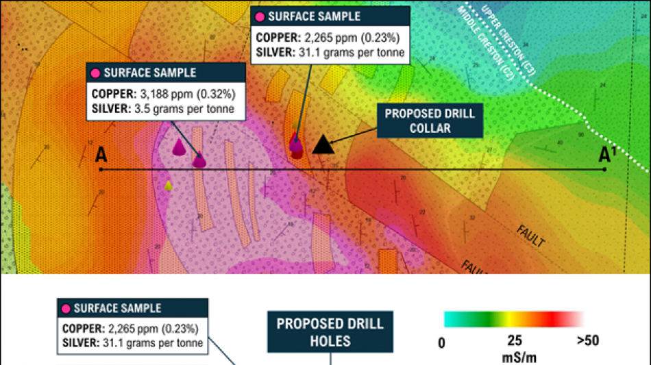 While the 2017 hole was drilled along the limb of the anticline, Aeonian's planned holes will test the hinge zone, a setting considered more favourable for structural and stratigraphic mineral traps in Revett-type sediment-hosted copper systems.