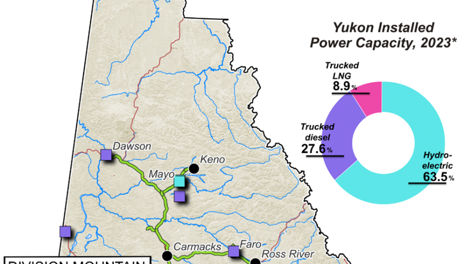 The Division Mountain deposit is located 20 km west of a major electrical transmission line that runs in parallel with the Klondike Highway and ideally situated to provide feedstock to a local power plant.