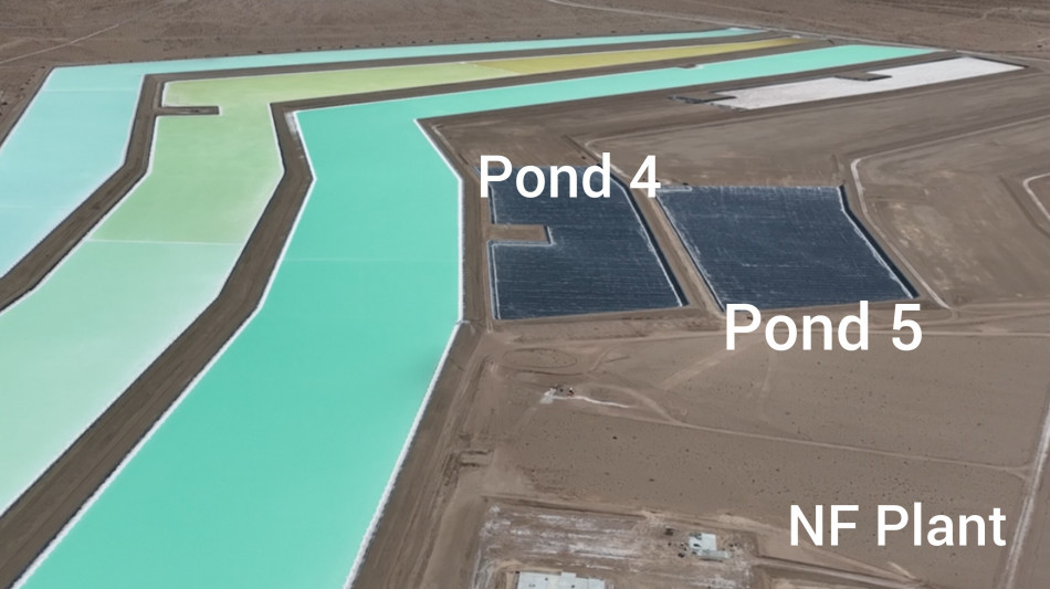 At HMW, evaporation Ponds 4 and 5 have been re-designed and scaled to support the Phase 1 production rate of 4,000 tonnes per annum of lithium carbonate equivalent ("LCE"). Liner installation on Pond 4 and 5 has been completed, and works are currently underway to subdivide areas of these ponds to optimize the concentration process of the lithium chloride product.