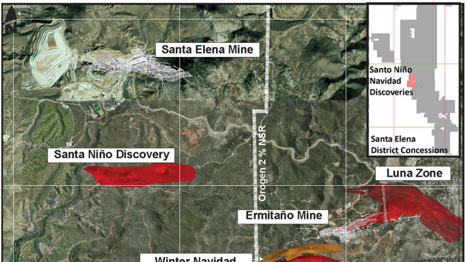 Orogen holds a royalty interest on the approximately 167 square-kilometre Ermitaño mining concession, located in Sonora, Mexico. Ermitaño is contiguous with the Santa Elena mining claims both of which are owned and operated by First Majestic. (Figure 1). Orogen's area of interest contains the producing Ermitaño deposit, the Luna and Aitana veins, and the recently discovered Navidad/Winter vein systems.