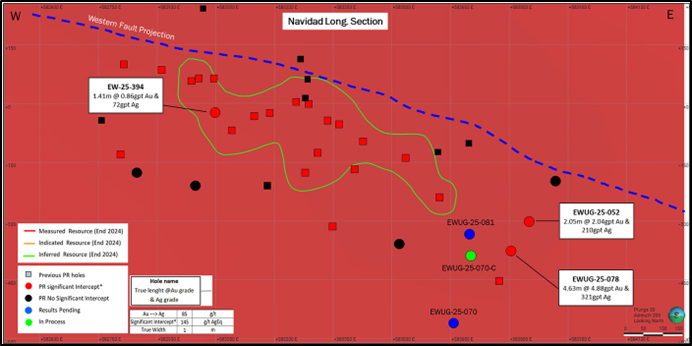 Exploration drilling at the Navidad area includes EWUG-25-078 grading 5.8 grams per tonne ("g/t") gold and 126 g/t silver over 8.0 metres and 4.88 g/t gold and 50 g/t silver over 4.6 metres (true width)