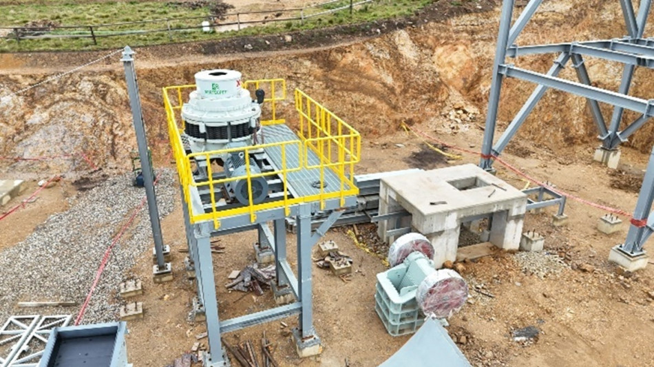 Assembly of the crushing circuit is well advanced. The cone crusher and vibrating screen have been installed, along with the fine ore bin and several conveyors. The run-of-mine ore bin is on site and undergoing pre-assembly, while installation of the primary crusher is currently underway.
