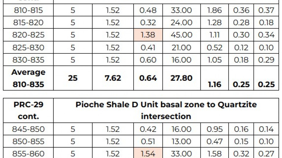 Historic and current drilling has encountered multiple gently dipping mineralized beds within a carbonate replacement deposit ("CRD") environment hosted by the Combined Minerals Bed and Pioche Shale rock formations. All mineralization encountered in the past and current drilling, is at depths shallower than 300 metres (1000 feet) and therefore, is potentially amenable to open pit mining, subject to further technical and economic evaluation.