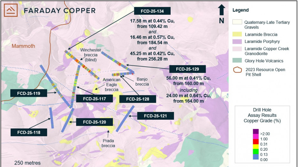 VANCOUVER, BC / ACCESS Newswire / January 22, 2026 / Faraday Copper Corp. ("Faraday" or the "Company") (TSX:FDY)(OTCQX:CPPKF) is pleased to announce the results of the first eight drill holes from its Phase IV drill program at the Copper Creek Project, located in Arizona ("Copper Creek"). These holes targeted near-surface copper mineralization in the American Eagle area as well as infill drilling and geotechnical objectives.