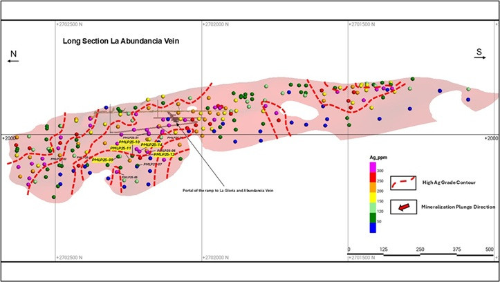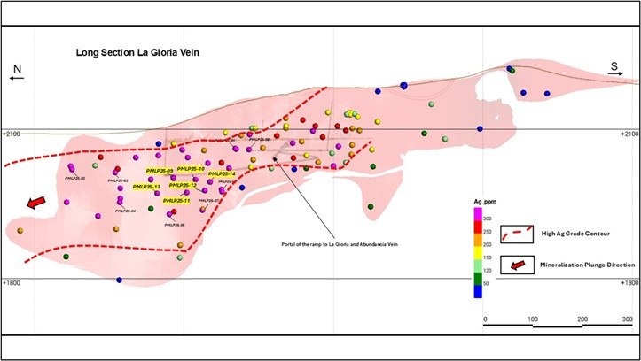 Hole PMLP 25-14 at Gloria: 694 g/t Ag and 0.63 g/t Au over 4.52 metres true width