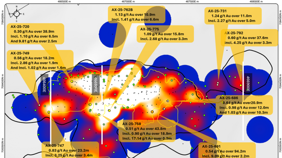 AX-25-792 - 4.25 g/t Au over 3.3m within 0.60 g/t Au over 37.6m; includes 14.60 g/t Au over 0.5m