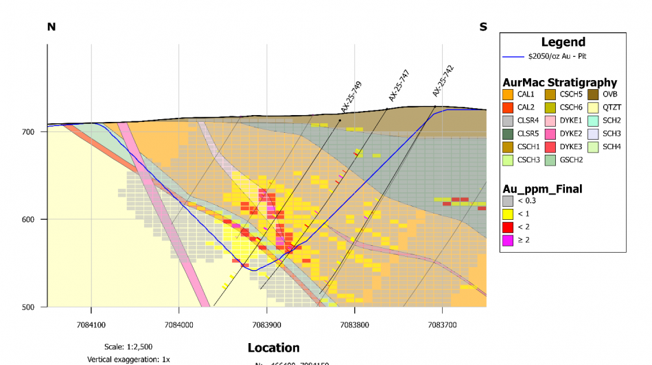 "The high-grade gold mineralization in the Aurex Hill zone (East Powerline Deposit) and the Airstrip Deposit reinforces our understanding of the high-grade mineralization and achieves the objective of targeting areas suitable for starter pits," said Tara Christie, President and CEO. "In the Aurex Hill zone, high-grade sheeted quartz veins show potential for further expansion of the deposit, while the high-grade structures (marl) with brecciated quartz represent a new drill target (Figure 4). In Airstrip, the skarn mineralization in Cal 2 (lower horizon) shows consistent high-grade gold mineralization with holes AX-25-792 and AX-25-731, indicating the potential for eastward expansion at Airstrip (Figure 7 and 10)."