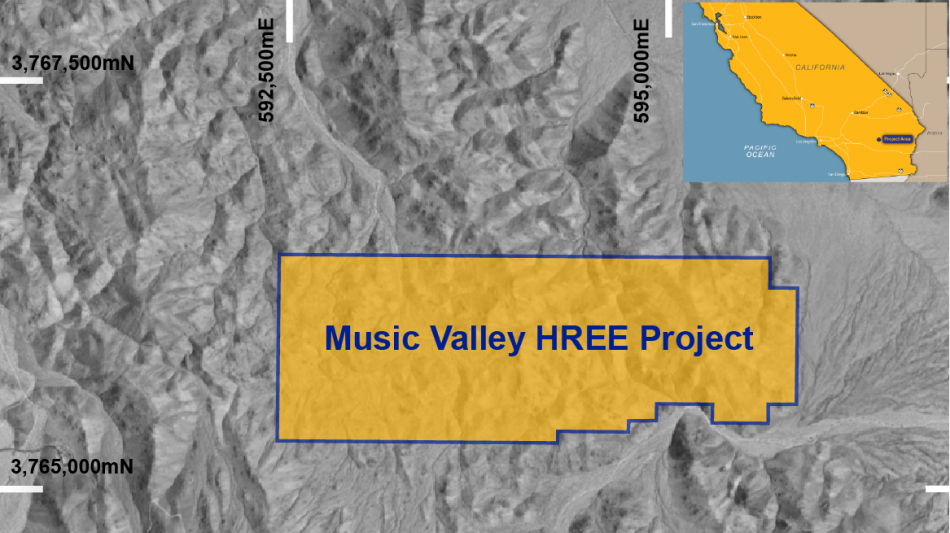 Music Valley heavy rare earths (HREE) acquisition: Dateline has secured the Music Valley HREE Project, comprising 57 claims over 1,140 acres in the Music Valley area of California.