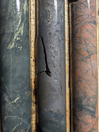 Hole MEPS-25-21, drilled 25m west of MEPS-25-20, intersected a broad interval of copper mineralization and encountered covellite-bornite mineralization near the bottom of the hole (see Table 1). The presence of covellite suggests that a process of hydrothermal upgrading of copper mineralization occurred as a result of multiple copper-mineralizing pulses. This very high tenor copper mineralization appears to be developing with depth towards the underlying ZTEM resistivity anomaly.