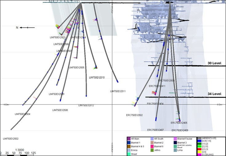 The drilling is intended to evaluate the continuity of the mineralised zones on the Blanket, Eroica and Lima ore bodies for the purposes of increasing confidence in the existing mineral resources and growing the mineral resource estimate beyond 34 level, which is at 1,110 metres below surface. These results follow the previously announced deep drilling results published on June 23, 2025.