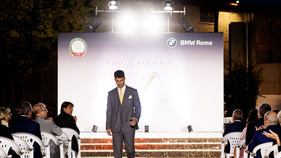 Sono circa trenta, tra giacche, gilet, pantaloni e cappotti, i capi realizzati dagli 8 detenuti aspiranti sarti, per una sera anche indossatori dei loro vestiti, che hanno sfilato nel mezzo dell'Area Verde dell'Istituto penitenziario di Rebibbia Nuovo Complesso (1560 detenuti), per il progetto "Made in Rebibbia", portato avanti dal 2017 dall'Accademia Nazionale dei Sartori. La sfilata, presentata da Myriam Fecchi, si è svolta davanti a un pubblico composto dai direttori degli istituti penitenziari, da alcune autorità giudiziarie dai giornalisti e dalle famiglie dei reclusi. È il risultato di un anno di corso di alta sartoria maschile durato otto mesi, 650 ore, sotto la guida del maestro Sebastiano Di Rienzo, ex presidente dell'Accademia dei Sartori, che porta avanti il progetto sociale cominciato dall'ex presidente dei Sartori scomparso, Ilario Piscioneri. In prima fila, ad applaudire gli aspiranti sarti c'è Alessia Rampazzi, direttrice "reggente" del carcere, come lei stessa si definisce, perché in attesa di un nuovo direttore, funzionaria che ha reso possibile la realizzazione della sfilata. Nel parterre ci sono anche Massimiliano Di Silvestre, presidente e ad di Bmw Italia s.p.a., l'Ad di Bmw Roma Salvatore Nicola Nanni (sponsor del progetto), l'assessore del Comune di Roma a Moda, Grandi eventi, Sport e Turismo, Alessandro Onorato. Alcuni ospiti salgono sul palco a consegnare i diplomi ai detenuti.