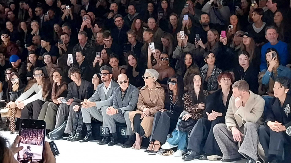 (di Gioia Giudici) Il diavolo non veste più Prada, ma Dolce e Gabbana: la sfilata milanese del duo ha ospitato infatti le riprese del sequel dell'iconico film con al centro il mondo della moda. In prima fila, nei panni della temibile direttrice Miranda Priestley, Meryl Streep, seduta esattamente di fronte ad Anna Wintour, l'ex primadonna di Vogue America, che ha ispirato il libro da cui è stata tratta la celebre pellicola del 2006, di cui si sta girando il secondo capitolo. E se nei giorni scorsi Milano ha ospitato un affollatissimo casting per cercare alcune comparse, oggi il Metropol - la sede milanese di Dolce e Gabbana - si è trasformato nel set di una scena del film, che ha tra i protagonisti anche Stanley Tucci, seduto a fianco di Meryl Streep-Miranda Priestley in trench di vernice beige, tacchi e occhialoni da sole d'ordinanza. Una sorpresa che è stata tenuta nascosta fino all'ultimo, anche se ieri gli invitati erano stati avvertiti che al momento dell'arrivo al Metropol si sarebbero dovuti dirigere direttamente al loro posto senza sostare nel foyer e che, al termine dello show, il backstage sarebbe rimasto chiuso, contrariamente al solito, quando gli invitati vanno a salutare gli stilisti e a complimentarsi per la sfilata. Questa volta, però, non c'erano i direttori veri a baciare e abbracciare Stefano Gabbana e Domenico Dolce, ma Meryl-Miranda che, subito dopo la sfilata, è stata scortata dietro le quinte. Ulteriore indizio che ha messo sull'avviso gli invitati, dei cartelli all'ingresso del Metropol che informavano che una produzione esterna avrebbe fatto delle riprese in autonomia all'interno della sala, acquisendone i diritti. Così, quando si stavano ormai spegnendo le luci e tra Naomi Campbell e Michele Morrone sono rimasti un paio di posti vuoti, era ormai chiaro che sarebbero arrivati i protagonisti della pellicola, accolti dall'applauso del pubblico in sala. Seduta tra Stanley Tucci e Naomi Campbell, Meryl Streep è rimasta imperturbabile per tutta la sfilata, proprio come la celebre direttrice cui è ispirato il suo personaggio. Difficile per gli invitati, con un'icona del cinema come lei, rimanere concentrati sulla collezione per la prossima estate, una "PJ Obsession" - questo il suo titolo - ispirata ai classici pigiami da uomo, riletti con la sensualità tipica del brand, tra pizzi, lingerie nera, autoreggenti, guepiere, maculato e blazer sartoriali.